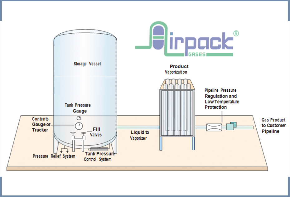 Airpack Gases has four cryogenic supply systems that are made available to customers for Argon, Nitrogen, Oxygen and LCo2.
